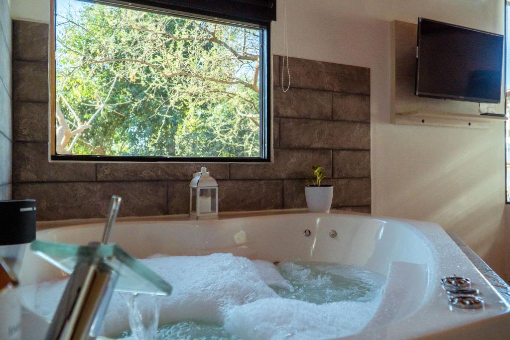 La bañera de hidromasaje forma parte de los servicios de bienestar en Complejo Quiya - Departamento Los Espinillos con hidromasaje.