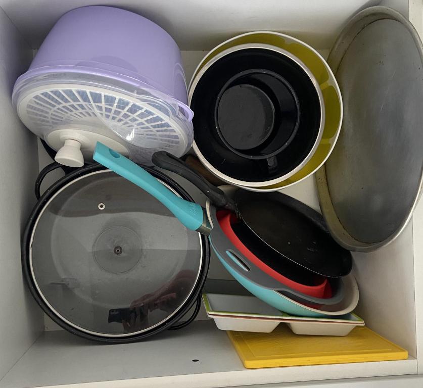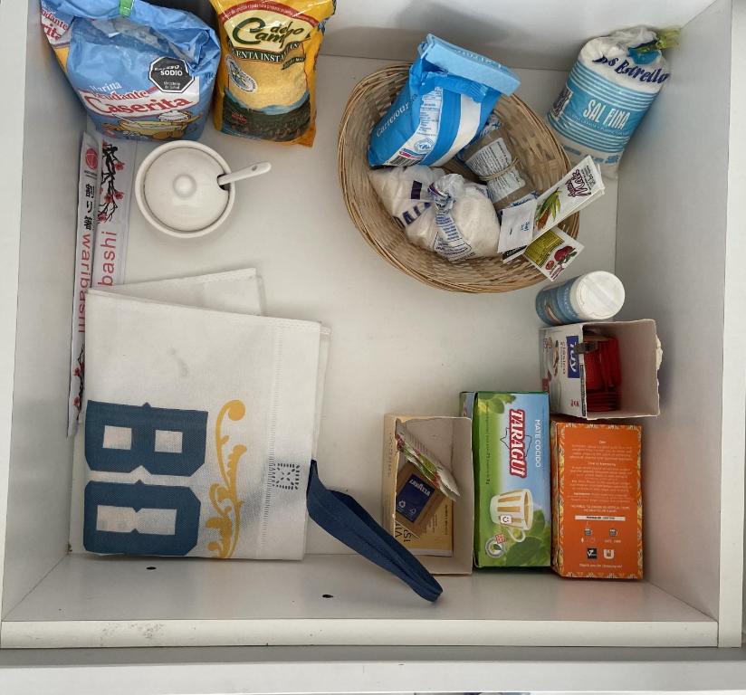 Zona de cocina, Nevera, Lavadora, Cocina, Horno, Tostadora, Productos de limpieza, Cafetera, Copas de vino