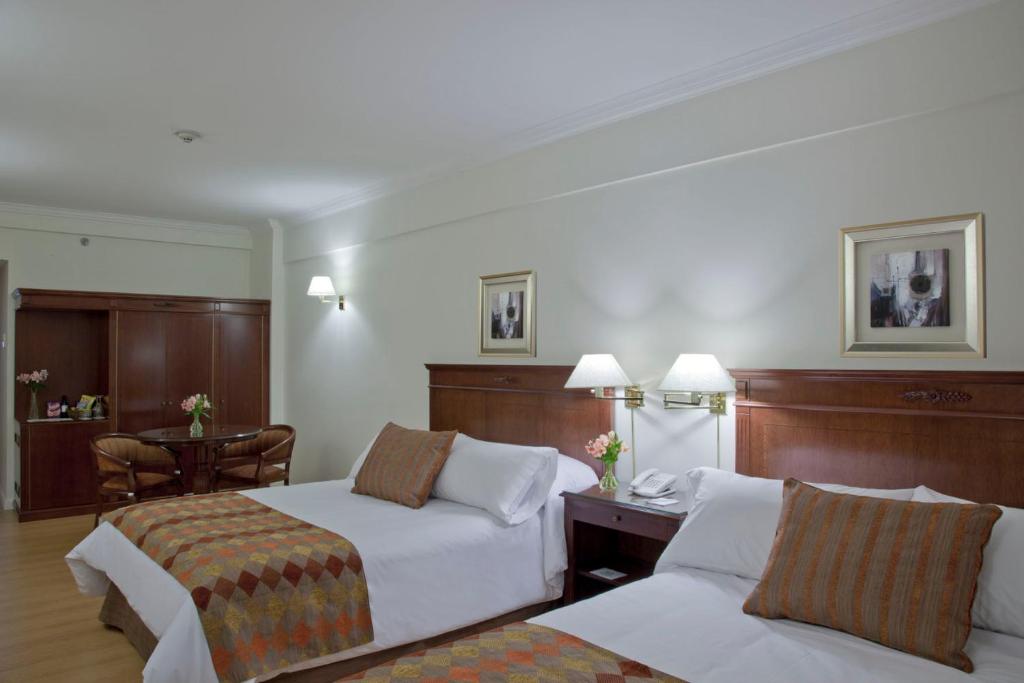 Esta amplia habitación cuenta con dos camas queen size, TV LCD, aire acondicionado y calefacción, minibar, escritorio, caja fuerte para ordenador portátil y WiFi gratuita. Pueden dormir 3 adultos o 2 adultos y 2 niños menores de 10 años.