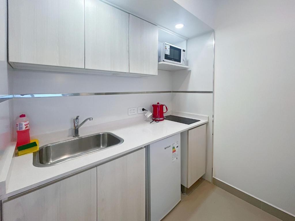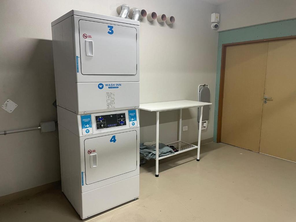 Zona de cocina, Nevera, Microondas, Hervidor eléctrico, Secadora de ropa, Tostadora, Cafetera, Mesa de comedor, Fogones