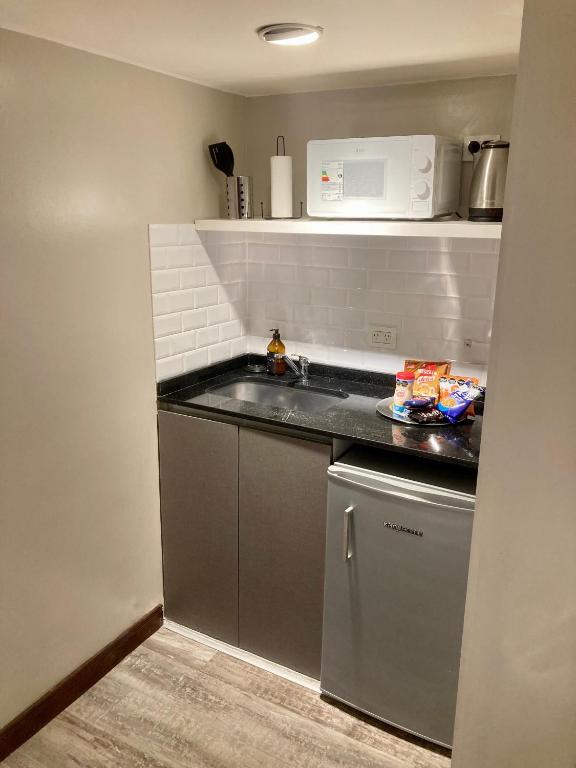 Zona de cocina, Microondas, Hervidor eléctrico, Utensilios de cocina, Productos de limpieza, Mesa de comedor