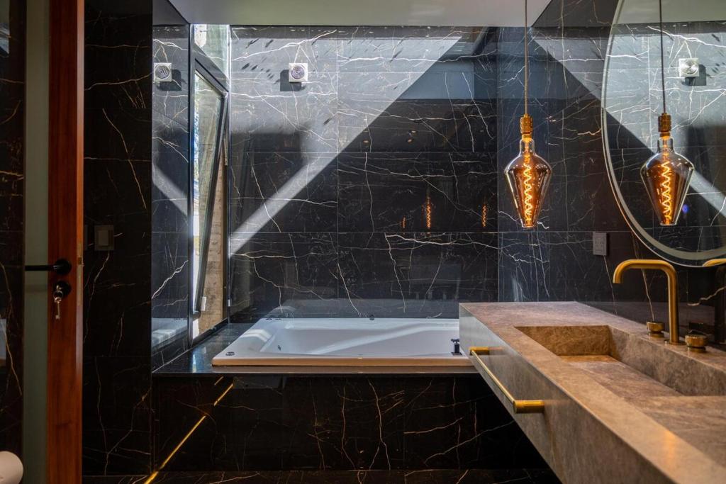 This holiday home's special features are the private pool and the hot tub. The holiday home's kitchen is available for cooking and storing food. The spacious holiday home offers air conditioning, a washing machine, heating as well as a terrace with garden views. The unit offers 1 bed.