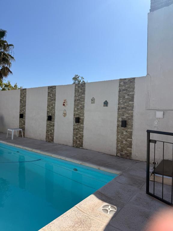 Guests will have a special experience as this holiday home provides a private pool. Featuring a private entrance, this air-conditioned holiday home is comprised of 2 living rooms, 1 separate bedroom and 1 bathroom with a shower. Guests can make meals in the kitchen that is fitted with a stovetop, a refrigerator, kitchenware and an oven. The holiday home offers an electric kettle, a sofa, heating, a flat-screen TV, as well as garden views. The unit offers 3 beds.