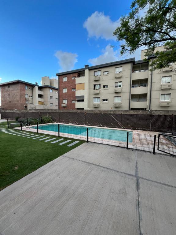 Hermoso dpto con cochera y pileta ofrece una piscina al aire libre disponible todo el año.