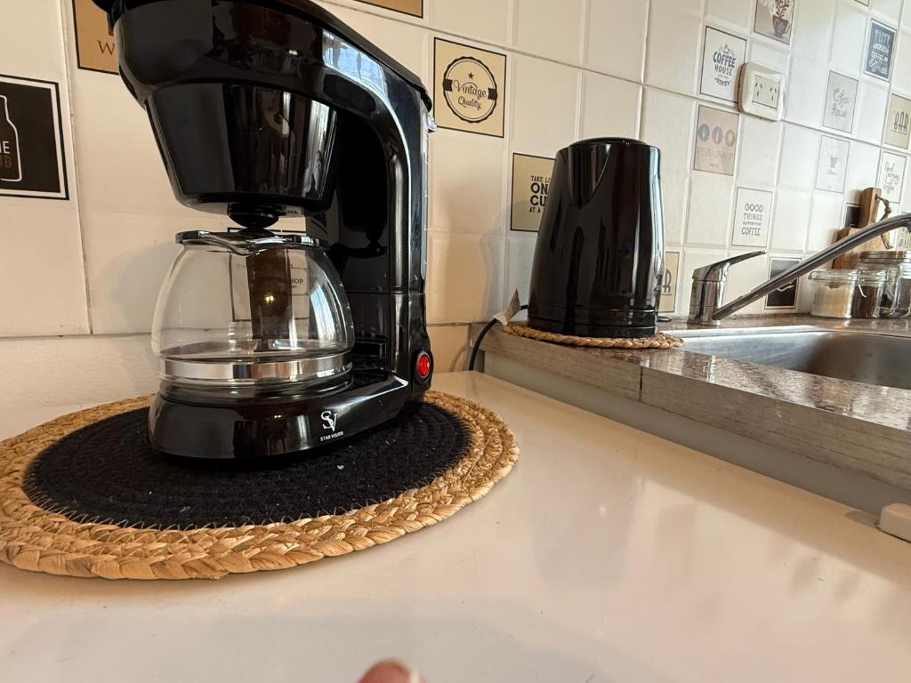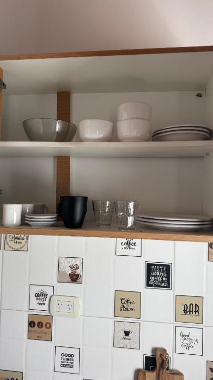 Zona de cocina, Cocina, Nevera, Productos de limpieza, Cafetera, Copas de vino
