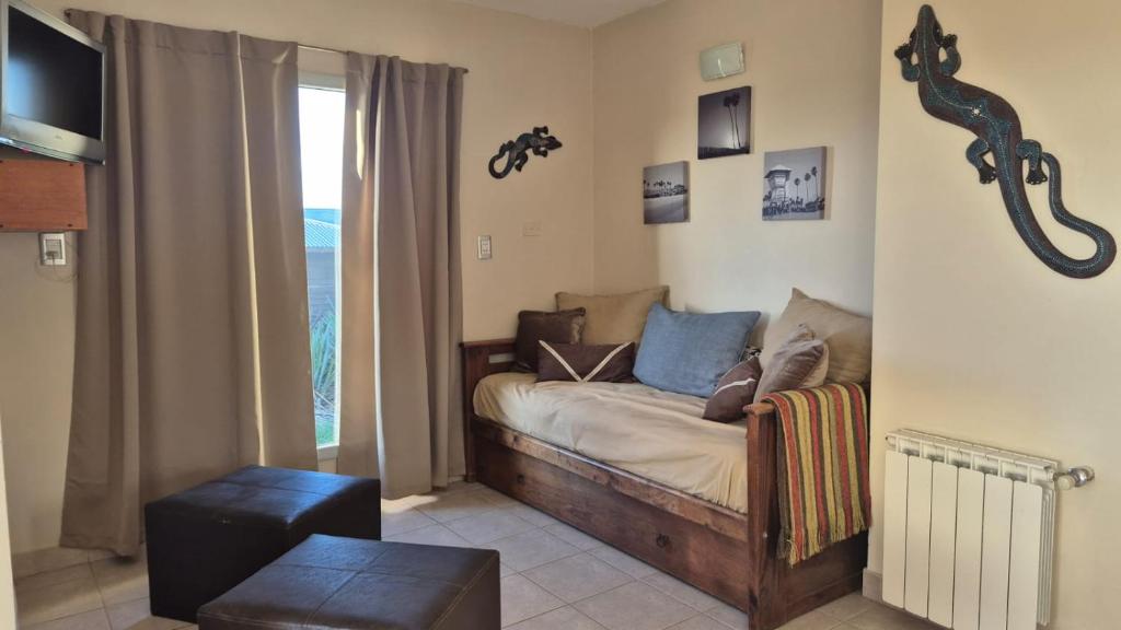 Perchero, Tendedero, Sofá cama, Enchufe cerca de la cama