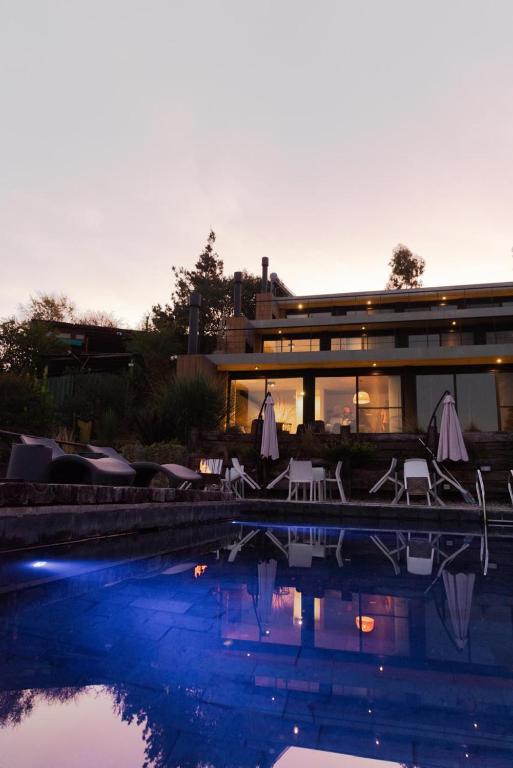 This holiday home's special features are the infinity pool and the fireplace. Boasting a private entrance, this air-conditioned holiday home comes with 1 living room, 2 separate bedrooms and 1 bathroom with a shower and a bidet. Guests can make meals in the kitchen that features a stovetop, a refrigerator, kitchenware and a microwave. The spacious holiday home features a flat-screen TV with streaming services, a minibar, a seating area, a dining area as well as lake views. The unit has 4 beds.
