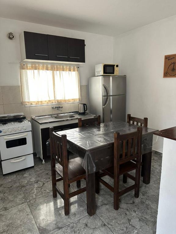Zona de cocina, Cocina, Utensilios de cocina, Nevera, Hervidor eléctrico, Mesa de comedor