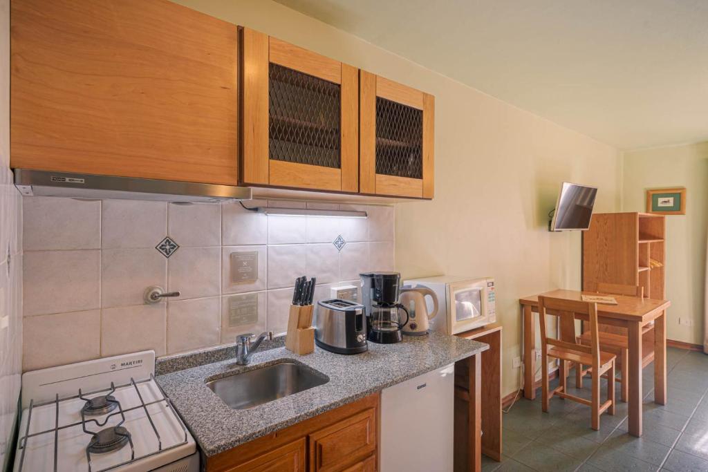 Estudio con cocina, baño privado, TV por cable y zona de comedor.