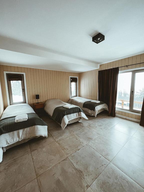 The fireplace is a top feature of this chalet. This spacious chalet includes 1 living room, 2 separate bedrooms and 2 bathrooms with a bath and a shower. Guests can make meals in the kitchen that has a stovetop, a refrigerator, kitchenware and an oven. The chalet offers a private entrance, a tea and coffee maker, a seating area, a flat-screen TV with satellite channels, as well as lake views. The unit has 5 beds.