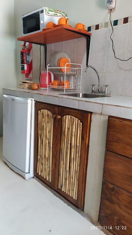 Zona de cocina, Nevera, Microondas, Cocina, Hervidor eléctrico, Utensilios de cocina, Productos de limpieza, Mesa de comedor