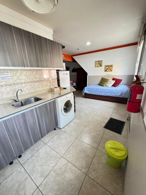 Zona de cocina, Microondas, Lavadora, Cocina, Utensilios de cocina, Horno, Tostadora, Cafetera, Mesa de comedor