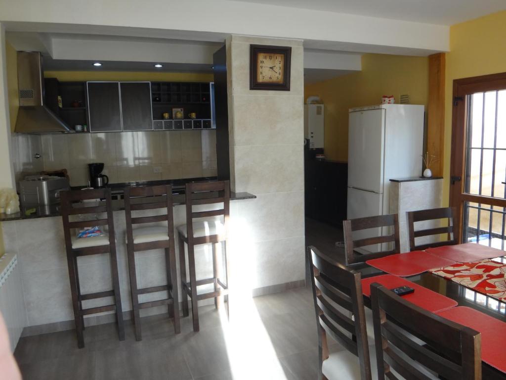 Zona de cocina, Nevera, Microondas, Cocina, Hervidor eléctrico, Utensilios de cocina, Horno, Fogones, Tostadora, Cafetera, Mesa de comedor, Copas de vino