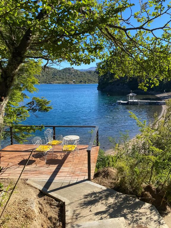 La dirección del alojamiento es Paraje La Angostura, sobre el Lago Alumine, Villa Pehuenia, Argentina.